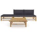 4-teiliges Lounge-Set mit dunkelgrauen Bambuskissen