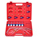 Deze set is ontworpen om snel en effectief de hoeveelheid brandstof te meten die elke injector naar het reservoir terugvoert. Zo kan je te weten komen of een injector beschadigd is. Deze kit maakt gelijktijdige meting van de druk van alle 6 injectoren mogelijk. Er zijn 24 injectoradapters die geschikt zijn voor Bosch-01, SIEMENS-02, DENSO-03 en DELPHI injectoren. Hij heeft ook een geanodiseerd hangend flessenrek voor de motorruimte. Een gegoten koffer is inbegrepen voor transport en opslag.